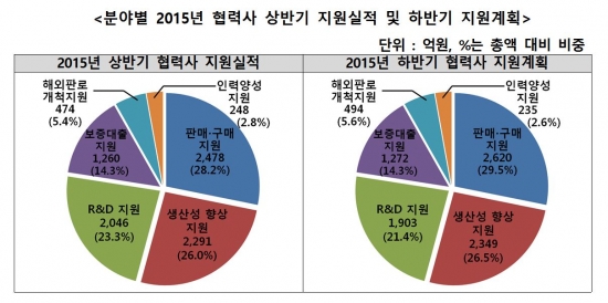 지난해 협력사 지원실적과 비교할 경우 R&D 부문이 35.2%, 해외판로개척 부문이 14.2%, 인력양성 부문이 12.3% 증가할 것으로 조사됐다.