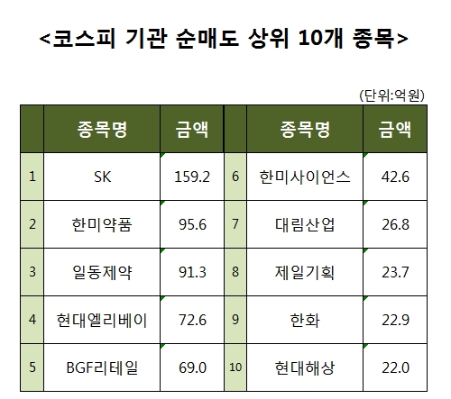 [코스피 기관 순매도 상위 10개 종목]