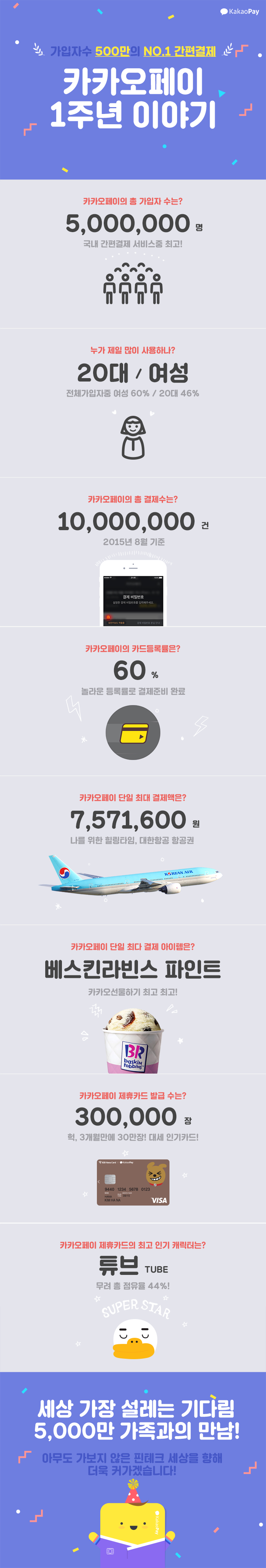 이중 가입고객수 500만명은 국내 신용카드 이용자의 20%에 육박하는 수치이다. 카카오페이가 제휴가맹점 확대, 다양한 할인혜택 제공, 고액결제 비밀번호 기능 도입, UI 개편 등 다방면으로 서비스 사용성과 편의성을 키워온 결과이다. 또 카카오페이 체크카드는 카카오프렌즈 캐릭터를 활용한 톡톡 튀는 디자인과 풍부한 고객 혜택을 바탕으로 타 제휴카드를 압도하는 발급수를 기록하며, 단 3개월만에 인기 금융 상품으로 떠올랐다.