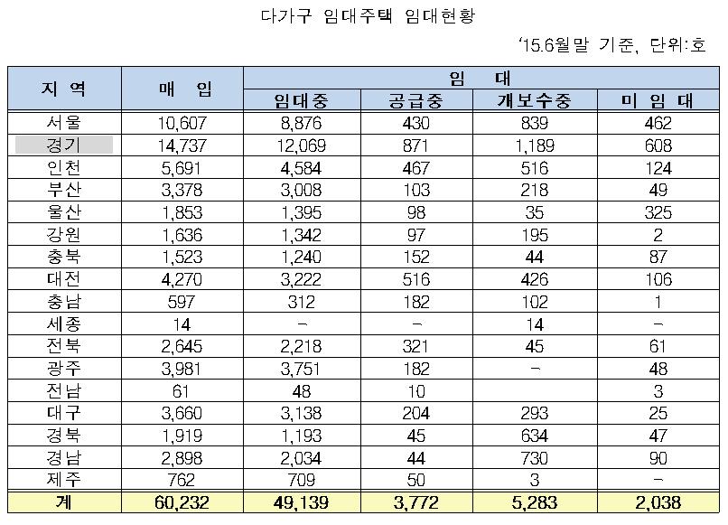 먼저 매입임대주택의 미임대 현황을 살펴보면, LH는 지난 2004년부터 올해 6월까지 6만232가구의 다가구주택을 매입했는데 이 가운데 7,321가구(개ㆍ보수 5,283가구 포함)가 빈집 상태인 것으로 나타났다.