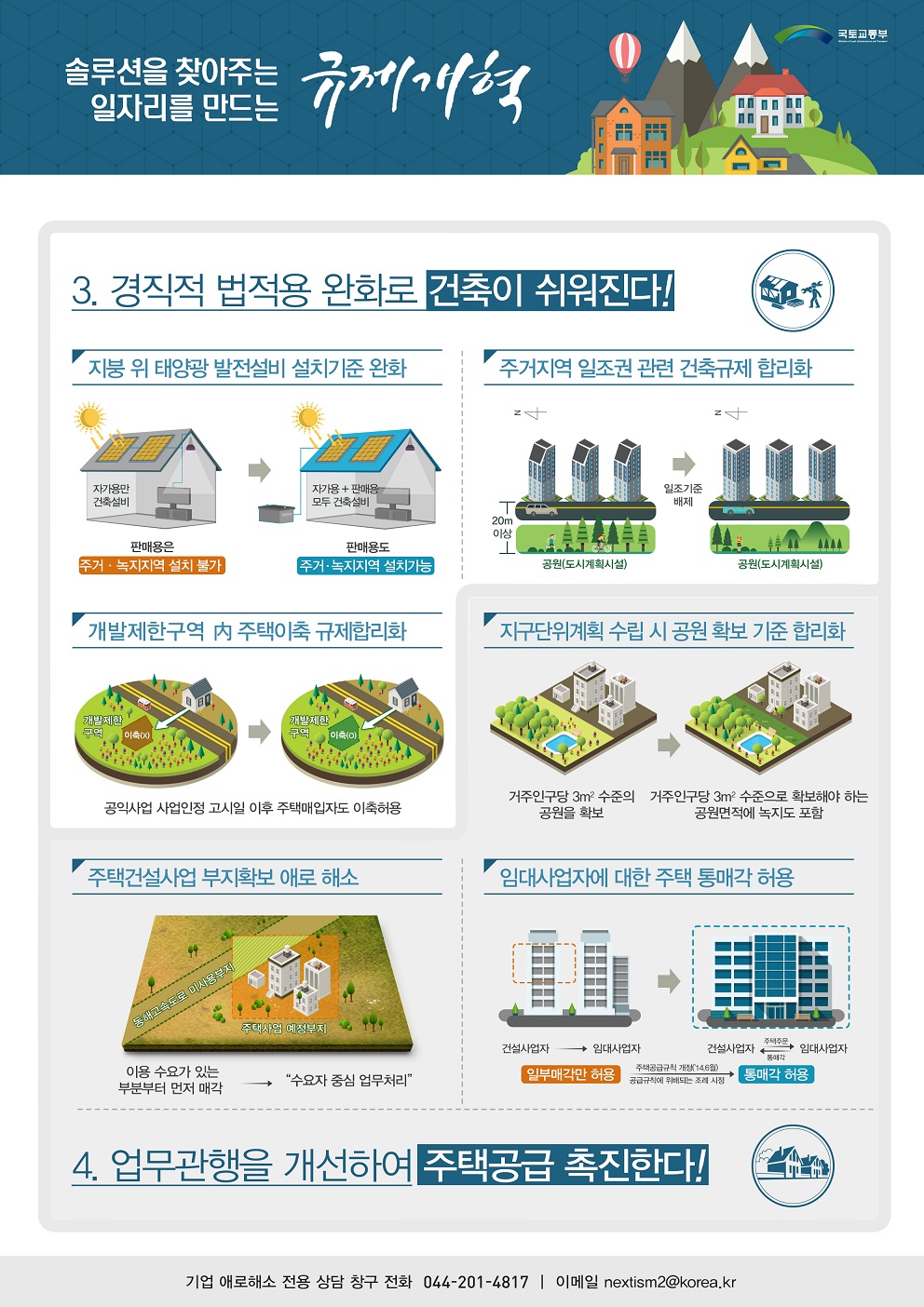 이에 따라 국토부는 12월까지 건축법 시행령을 고쳐 도시계획시설의 위치와 상관없이 대지에 인접한 도로와 도시계획시설의 너비 합이 20m를 넘으면 일조권사선제한 적용을 배제하도록 할 계획이다.