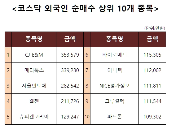 12일 코스닥 외국인 순매수 상위 10개 종목