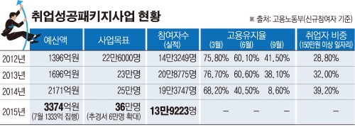 박근혜 정부가 일자리 창출을 위해 적극 추진해 온 취업성공패키지 사업이 ‘소리만 요란한 빈 수레’라는 지적이 나오고 있습니다. 취업성공패키지는 저소득 취업취약계층, 청ㆍ장년층의 취업 촉진을 위해 최장 1년간 취업상담, 직업훈련, 직업알선 등을 해 주는 취업지원 서비스입니다.