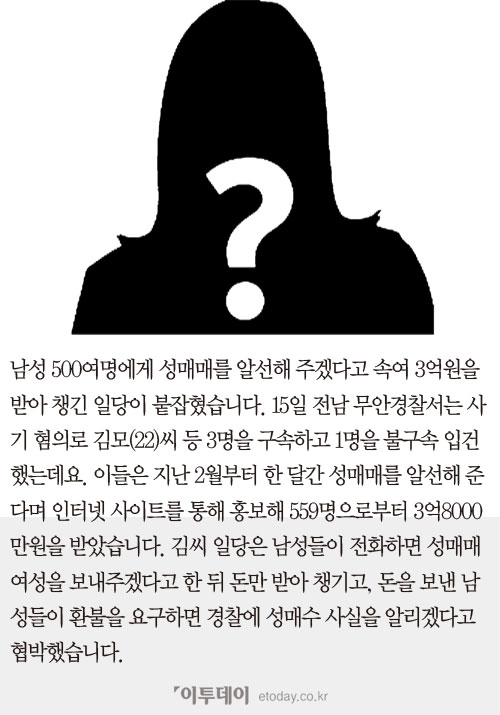 [카드뉴스] "성매매 알선해 주겠다" 속여 남성 500여명에 돈 뜯은 일당 검거