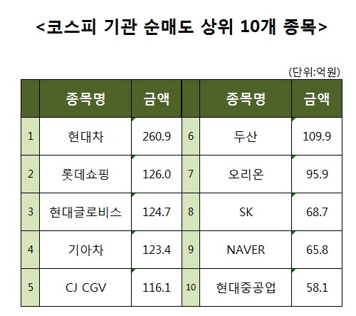 [코스피 기관 순매도 상위 10개 종목]