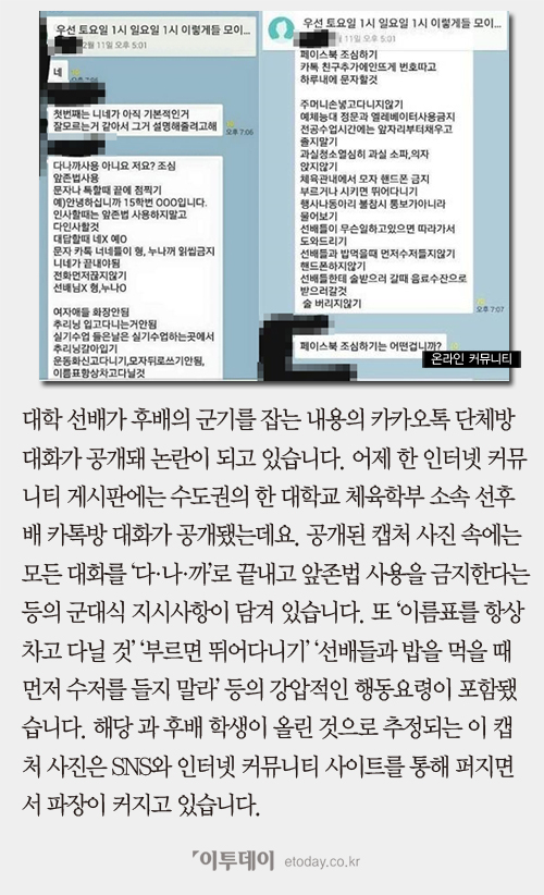 #대학 학부 카톡방 군기 잡기 논란 #대학 군기 #체대 군기 #뉴스팡팡