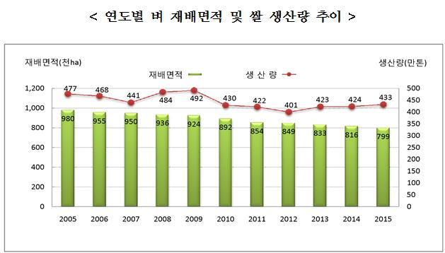 올해 쌀 재배면적이 줄었음에도 생산량은 늘어난 것으로 나타났다.
