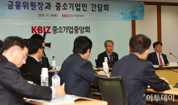 임종룡 금융위원장이 19일 서울 여의도동 중소기업중앙회에서 열린 중소기업인과의 간담회에 참석해 모두발언을 하고 있다. 이 자리에서 임 위원장은 “금융개혁을 통해 기술력 있는 중소기업의 성장을 지원하겠다”고 밝혔다. 신태현 기자 holjjak@