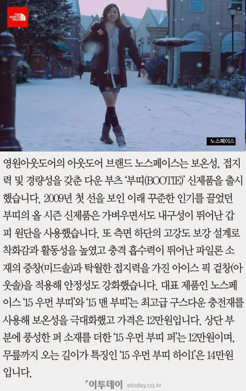 [카드뉴스] '공효진 부츠' 노스페이스 부띠, 얼마나 따뜻한가 보니
