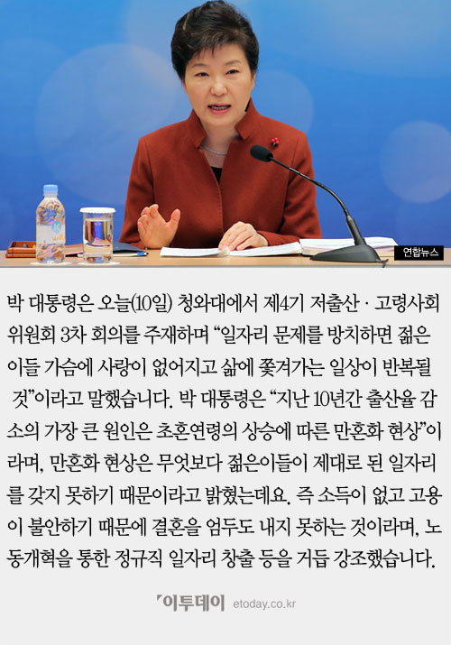 [카드뉴스] 박 대통령 "일자리 문제 때문에 젊은이들 사랑 없어져"