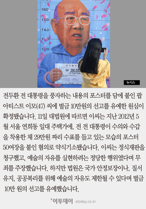 #전두환 #전두환 풍자 #전두환 풍자포스터 #전두환 풍자포스터 팝아티스트 #전두환 풍자포스터 팝아티스트 유죄 #전두환 풍자 팝아티스트 유죄 #뉴스팡팡