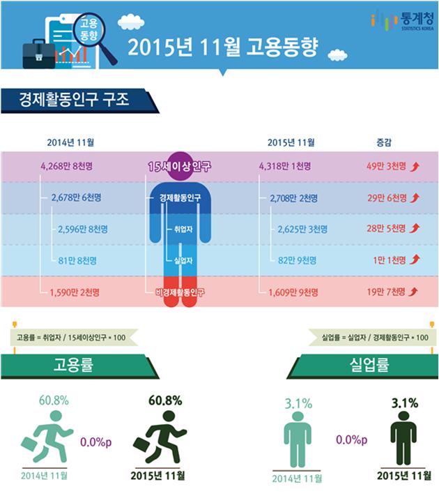 이밖에 경제활동인구는 작년보다 29만6000명 늘어났고, 고용률은 60.9%로 같았다.