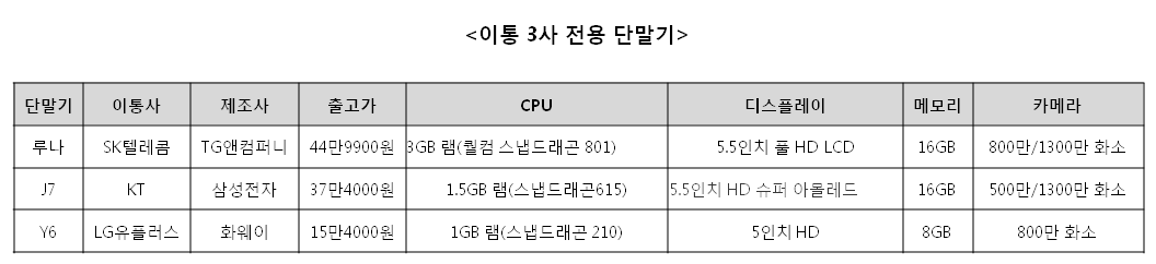 이동통신 3사가 전용 단말기 경쟁에 열을 올리고 있다. 한계에 직면한 이통시장에서 중저가 스마트폰을 단독으로 출시해 틈새 시장을 노리겠단 전략이다.