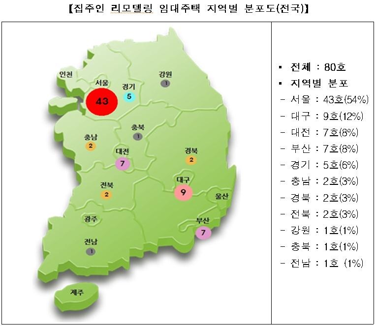 지역별로는 서울이 43호로 가장 많은 가운데, 대구, 대전, 부산 등 전국 주요도시에서 '집주인 리모델링 임대주택' 사업대상이 나왔다.