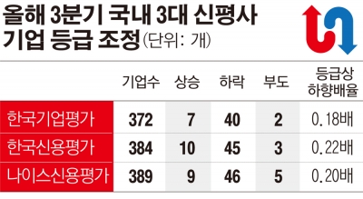 국내 3대(한국신용평가, 한국기업평가, 나이스신용평가) 신용평가사가 시장에 신뢰를 주지 못하고 있습니다. 자신들이 부여한 등급을 수시로 바꿔 기업과 투자자에게 혼란을 주는가 하면 책임 회피를 위해 무조건 등급을 낮추는 ‘고무줄’ 평가가 여전한 것으로 나타났습니다.