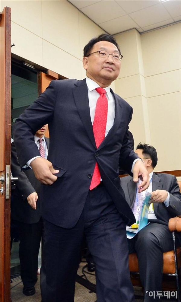 유일호 경제부총리 겸 기획재정부 장관 후보자가 11일 서울 여의도동 국회에서 열린 인사청문회에 참석하기 위해 회의장으로 들어서고 있다. 신태현 기자 holjjak@