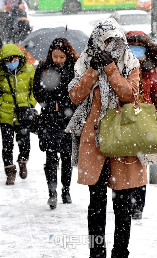 26일 서울 대방역 인근에서 시민들이 내리는 눈을 맞으며 출근길을 재촉하고 있다. 최유진 기자 strongman55@