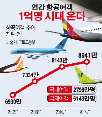 이에 따라 지난해 총 항공여객은 8941만명으로 전년에 비해 9.8%나 늘었습니다.