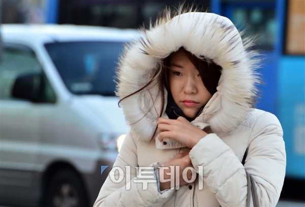 서울 아침기온이 영하 9.9도를 나타내고 체감온도는 영하 15도를 웃도는 등 전국에 강추위가 기승을 부린 15일 서울 세종로 광화문 네거리에서 한 시민이 두꺼운 옷을 입은 채 발걸음을 옮기고 있다. 기온은 17일까지 평년 수준을 밑돌겠고, 바람도 강하게 불어 체감온도는 더 낮을 것으로 기상청은 전망했다. 신태현 기자 holjjak@