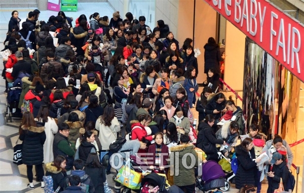 제29회 ‘베페 베이비페어’가 18일 서울 삼성동 코엑스에서 열린 가운데 참관객들이 행사 시작 시간 전부터 길게 줄을서 입장을 기다리고 있다. 오는 21일까지 열리는 이번 베이비페어에선 임신·출산·육아·교육 관련 국내외 140개사 960여 부스와 350여 개의 인기 브랜드가 참여해 관람객들에게 최신 육아 정보를 제공하는 한편 다양한 이벤트도 진행한다. 신태현 기자 holjjak@