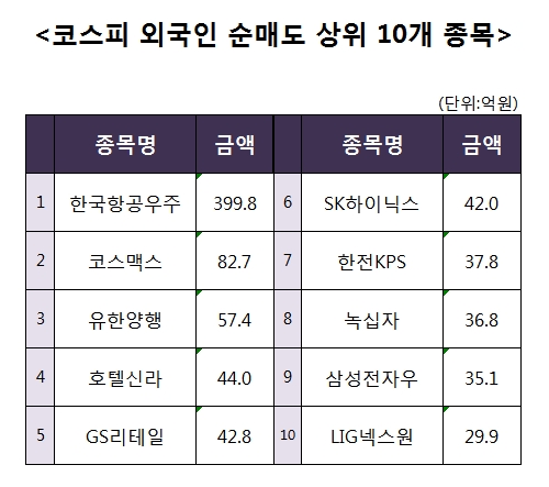 [코스피 외국인 순매도 상위 10개 종목]