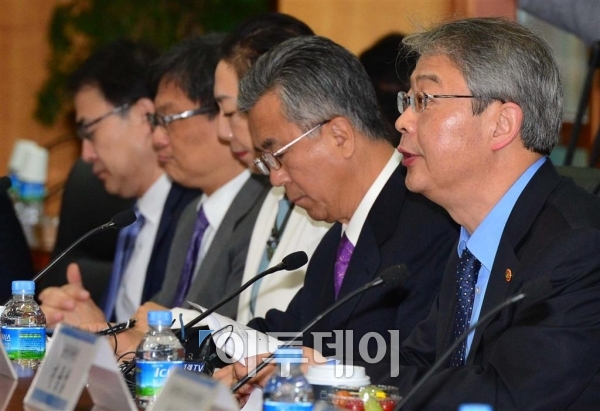 임종룡 금융위원장이 27일 서울 여의도동 금융투자협회에서 열린 제3차 금융개혁 추진위원회 회의에 참석해 모두발언을 하고 있다. 신태현 기자 holjjak@
