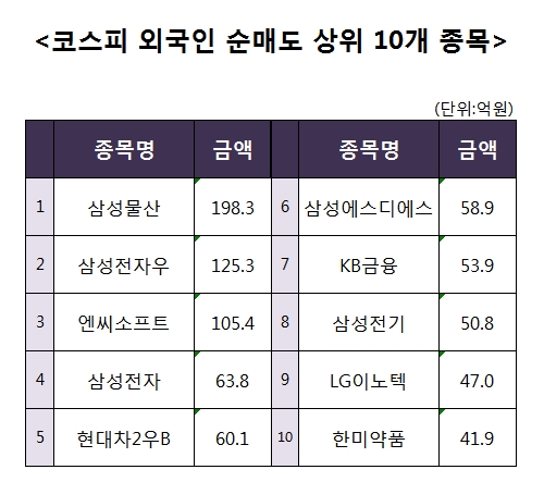 [코스피 외국인 순매도 상위 10개 종목]