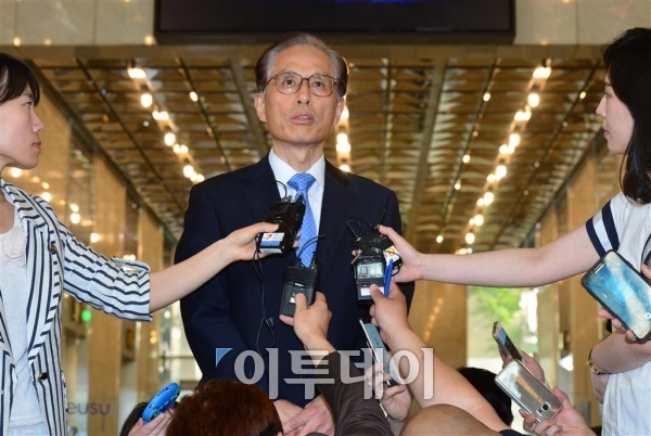 김현석 한진해운 재무본부장이 19일 서울 여의도동 본사에서 열린 채무 재조정을 위한 첫 사채권자 집회를 마친 뒤 집회 결과에 대해 설명하고 있다. 신태현 기자 holjjak@
