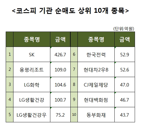 [코스피 기관 순매도 상위 10개 종목]