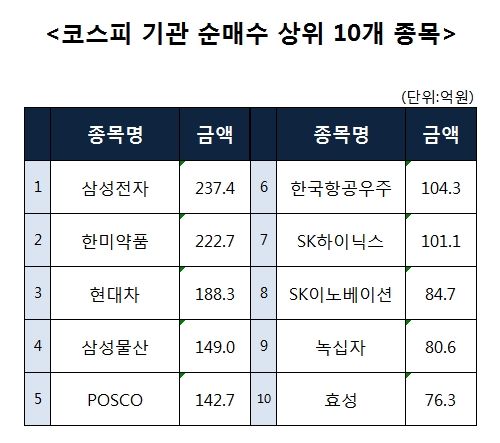 [코스피 기관 순매수 상위 10개 종목]