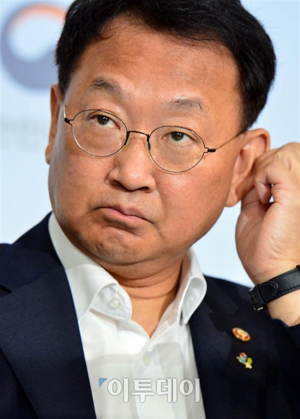 유일호 경제부총리 겸 기획재정부 장관이 8일 서울 세종로 정부서울청사에서 열린 기업구조조정 추진계획 및 국책은행 자본확충 등 보완방안 합동브리핑에 참석해 생각에 잠겨 있다. 신태현 기자 holjjak@