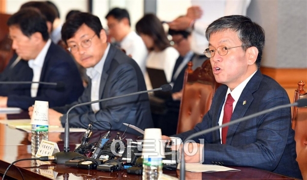 최상목 기획재정부 1차관이 24일 서울 명동 은행회관에서 열린 브렉시트 관련 동향점검 긴급 거시경제금융회의에 참석해 모두발언을 하고 있다. 신태현 기자 holjjak@