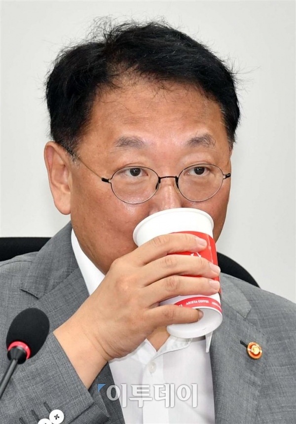 유일호 경제부총리 겸 기획재정부 장관이 15일 서울 여의도동 국회에서 열린 2016년도 추가경정예산 당정협의에 참석해 커피를 마시고 있다. 신태현 기자 holjjak@