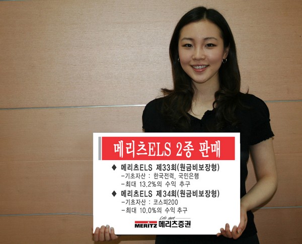 메리츠증권은 6일 200억원 규모의 ELS 2종을 오는 8일~9일에 걸쳐 판매한다고 밝혔다.