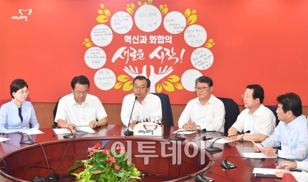 이정현 새누리당 신임 대표가 10일 서울 여의도동 새누리당 당사에서 열린 최고위원회의에 참석해 모두발언을 하고 있다. 신태현 기자 holjjak@