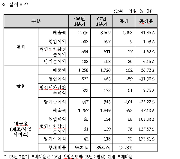 3월결산법인 중 비금융업종(제조/사업서비스) 등은 매출액과 순이익이 각각 47.10%, 173.81% 증가했고 금융업은 매출액 36.72% 증가, 순이익은 23.27% 감소했다.