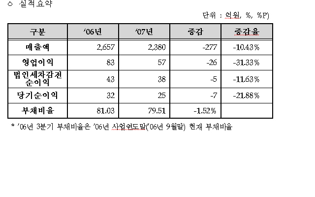 한편 9월 결산법인도 3분기(2006년 10월~2007년 6월) 전년 동기 대비 매출액과 순이익이 감소한 것으로 나타났다. 9월 결산 코스닥상장법인 5개사의 3분기 매출액과 순이익은 각각 2380억원, 25억원으로 전년 같은 기간에 비해 각각 10.43%, 21.88% 감소했다.