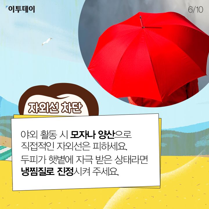 야외 활동 시 모자나 양산으로 직접적인 자외선은 피하세요.