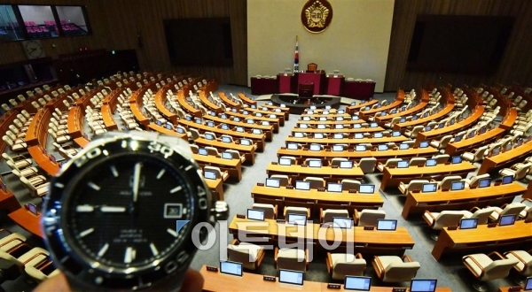 정부가 지난달 말 제출한 총 11조원 규모의 추가경정 예산안 처리를 위한 본회의가 무산된 30일 오전 서울 여의도동 국회 본회의장이 텅 비어있다. 이날 9시 본회의에 앞서 열릴 예정이었던 예산결산특별위원회 또한 전날 교육문화체육관광위원회 소속 야당 의원들이 누리과정 예산 6000억원 증액안을 단독 처리해 새누리당이 강하게 반발하는 등 일부 항목을 두고 막판 진통을 거듭해 개회되지 못했다. 신태현 기자 holjjak@