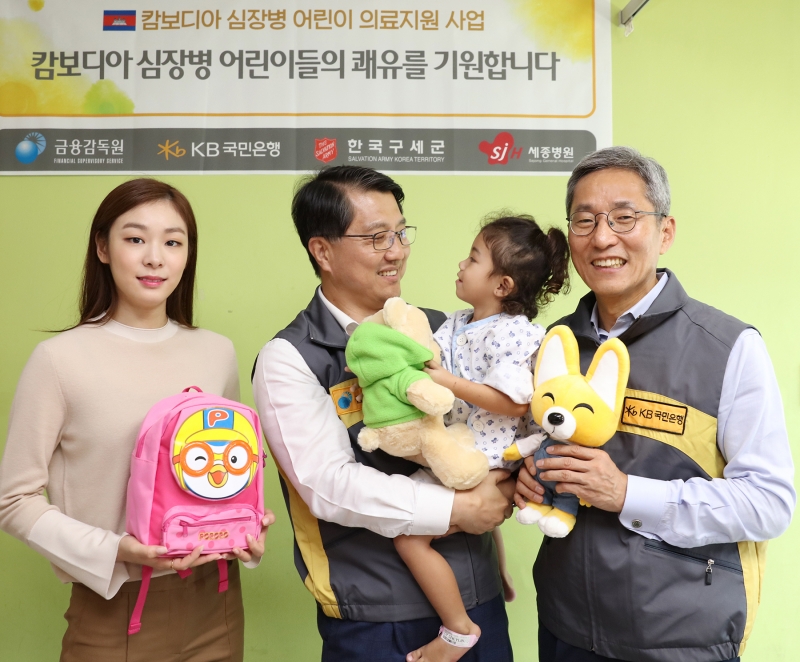 KB국민은행은 1일 진웅섭 금융감독원장, 김필수 구세군 사령관, 김연아 KB금융그룹 홍보모델과 함께 부천 세종병원을 방문해 ‘캄보디아 심장병 어린이 의료 지원’ 사업을 통해 국내에서 수술을 마치고 회복중인 어린이들을 격려했다고 밝혔다.