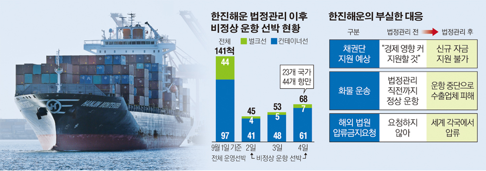 파산부 관계자는 “한진해운 측의 준비가 상당히 미흡했다”며 “해외 도산절차(파산신청)도 미리 준비해 국내에 기업회생절차 신청 즉시 각 나라 법원에 완벽하게 보내야 배 운항 조절도 미리 할 수 있는데, 협의가 안 된 상태였다”고 지적했다.