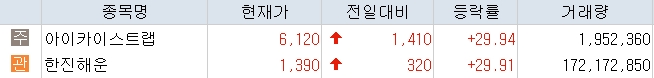6일 국내 주식시장에서는 유가증권 2개 종목이 상한가로 마감했다.