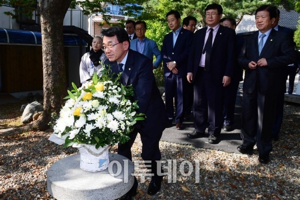[포토] 위안부 피해자 추모비, 헌화하는 심재권 위원장