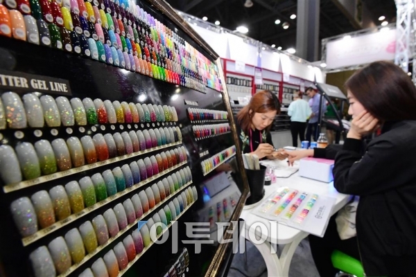 대한민국 뷰티박람회가 13일 경기 고양시 킨텍스에서 열린 가운데 관람객이 네일아트 체험을 하고 있다. 오는 16일까지 열리는 이번 행사에는 화장품, 헤어, 네일 바디케어, 피트니스, 패션 등 국내 뷰티업체 425곳이 참가한다. 고이란 기자 photoeran@