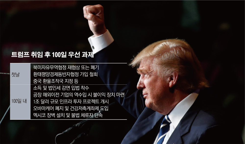 중국이 수출 경쟁국보다 우위에 서기 위해 위안화를 10년 이상 인위적으로 절하해온 것은 전문가들 사이에서도 거의 이견이 없다. 통화 약세 정책 덕분에 중국은 세계 2위의 경제 대국으로 올라섰고, 결국 이는 미국이나 다른 나라의 제조업이 희생된 측면도 무시할 수 없다. 그러나 최근 약 2년은 위안화가 강한 하락 압력에 직면, 중국 당국은 외환보유고를 1조 달러 가까이 풀어 위안화를 매입했다. 중국의 경기 둔화가 전례없는 자금 유출을 초래해 위안화 하락에 제동이 걸리지 않는 상황이 이어지고 있기 때문이다. 피터슨국제경제연구소의 수석 연구원으로 중국의 환율 정책에 대한 제재 강화를 주장해온 프레드 버그스텐은 이에 대해 “지난 2년간은 중국이 환율 조작을 하지 않았다. 현재 중국에 환율조작국 딱지를 붙이는 것은 매우 부적절하고 부정확한 것”이라고 말했다. 그래도 트럼프는 중국으로부터 무역을 둘러싼 양보를 이끌어낼 생각으로 내년 4월 미 재무부가 반년에 한 번 발표하는 ‘환율보고서’를 통해 중국에 비난을 퍼부을 것으로 보인다. 영국 싱크탱크 ‘옥스포드 이코노믹스’의 미국 거시경제 책임자 그레고리 다코는 “트럼프가 선거 기간에 자주 발언했던, 중국에 45%의 무역 관세를 부과한다는 주장에서는 후퇴할 것으로 보이지만 더욱 좁혀진, 제한적인 보호주의적 조치를 취해 압력을 가할 수 있다”고 예상했다.