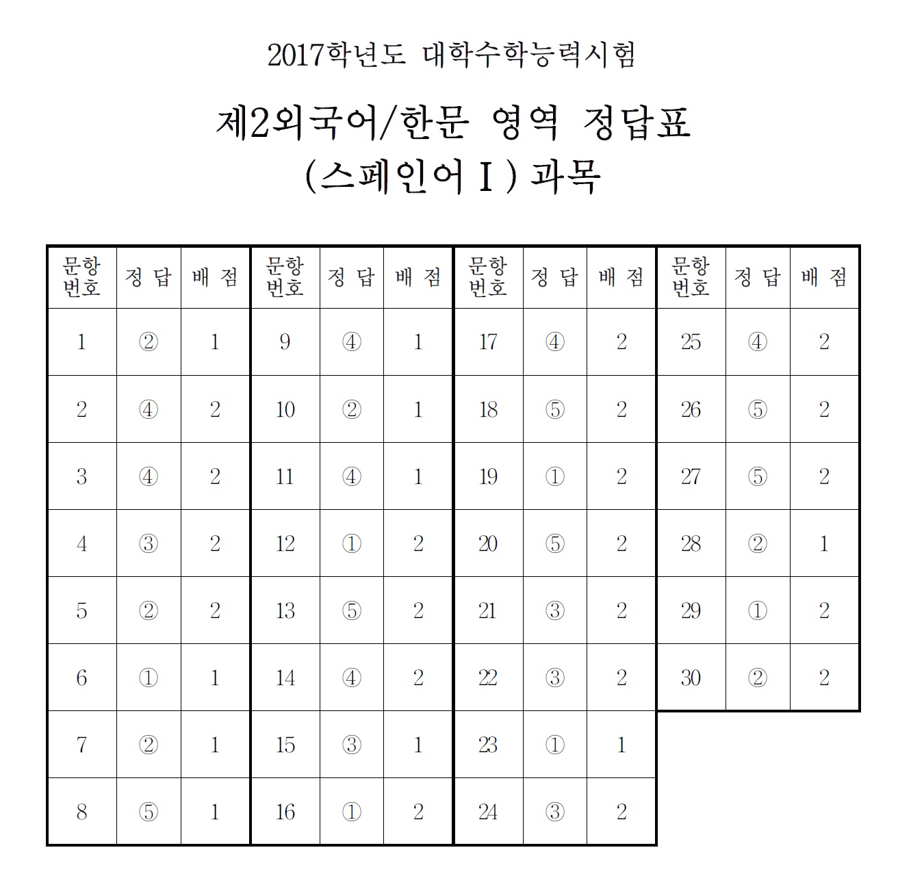 [수능 정답] 2017 수능 제2외국어 스페인어 정답
