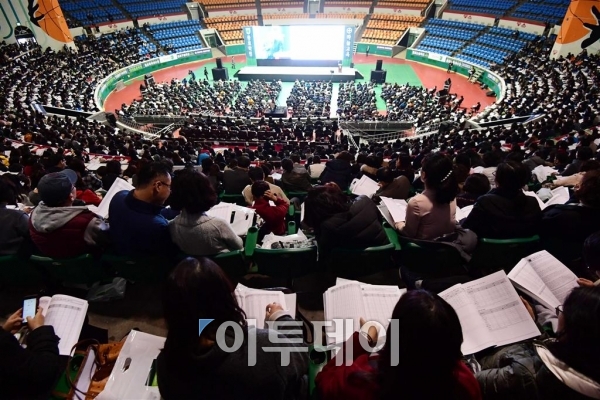종로학원 2017대입설명회가 18일 서울 잠실학생체육관에서 열린 가운데 행사장을 가득 채운 수험생과 학부모들이 입시자료를 살펴보고 있다. 고이란 기자 photoeran@