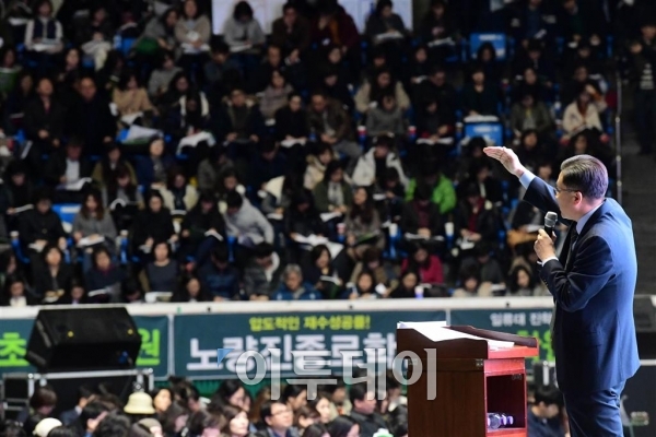 종로학원 2017대입설명회가 18일 서울 잠실학생체육관에서 열린 가운데 행사장을 가득 채운 수험생과 학부모들이 입시설명을 듣고 있다. 고이란 기자 photoeran@