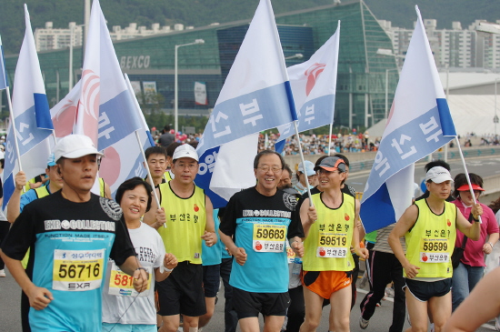 부산은행은 7일 개최된 '부산바다 하프마라톤'에 이장호 은행장을 비롯한 임직원 및 직원가족 300여명이 참가했다.