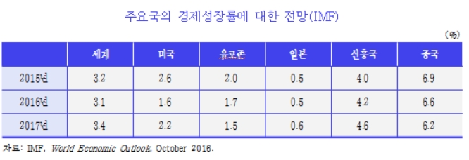 특히 보고서는 "트럼프의 경제정책이 여전히 불확실한 가운데, 중기적으로는 보호무역주의 확산 등이 세계경제에 미칠 부정적인 영향에 대한 우려가 높아지고 있다"며 "미국 대선 이후 주요국의 장기금리가 상승하고 신흥국 통화가치가 대폭 하락하는 등 향후 진행될 미국 금리인상의 영향이 반영되면서 국제금융시장이 다소 불안한 모습"이라고 진단했다.